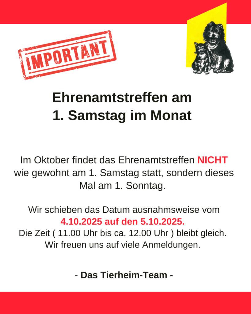 Ehrenamtstreffen für Interessenten wird im Oktober verschoben!