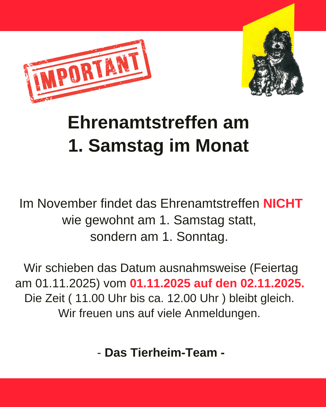 Im November findet das Ehrenamtstreffen NICHT wie gewohnt am 1. Samstag statt,