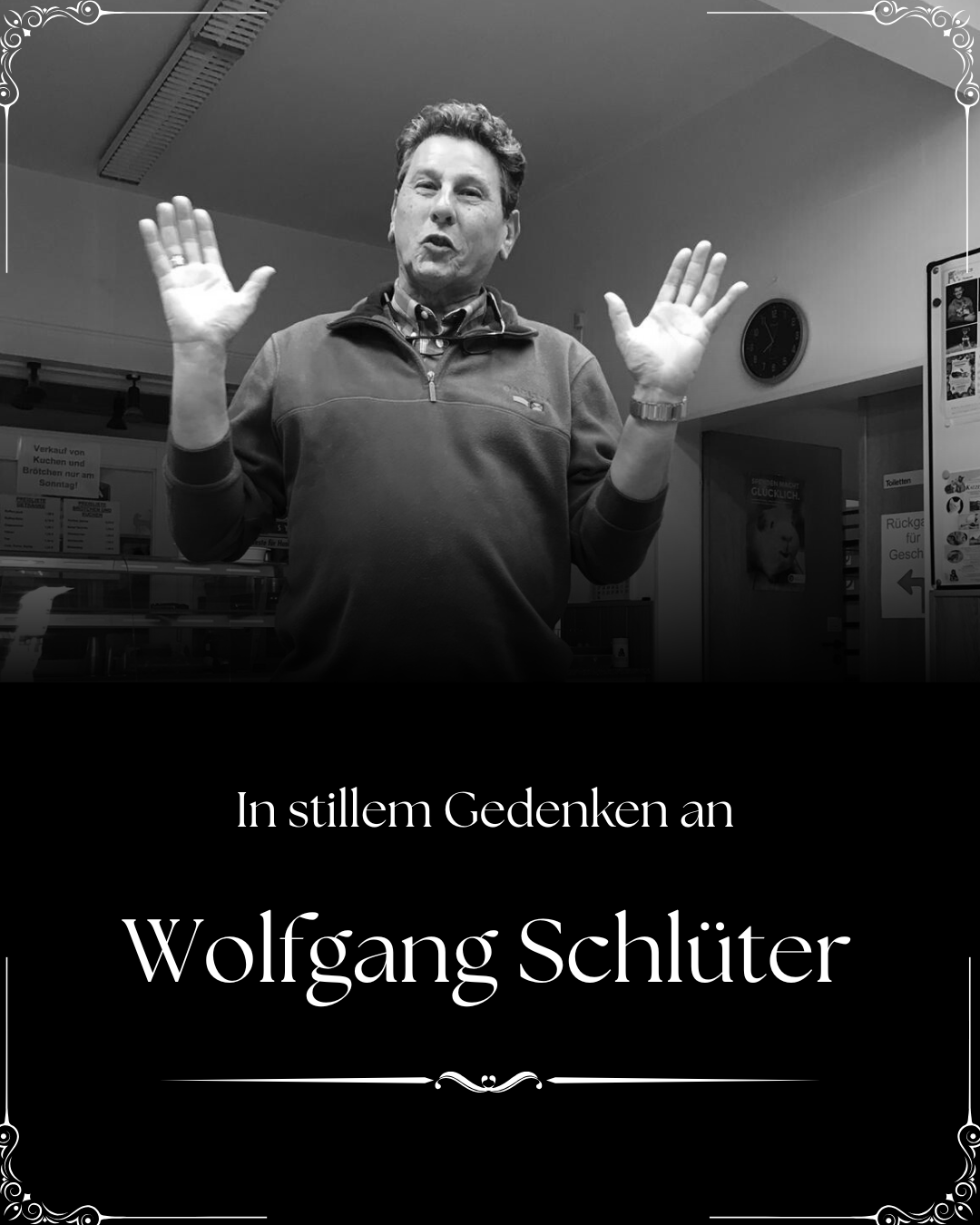 In der vergangenen Woche ist Wolfgang Schlüter verstorben. Die Beerdigung wird im kleinen Kreis stattfinden; ein Termin steht derzeit noch nicht fest.
