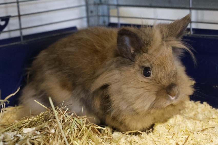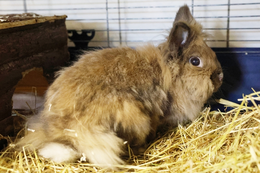 Wir suchen ein neues Zuhause für unser weibliches Löwenkopf-Kaninchen „Fluse“.