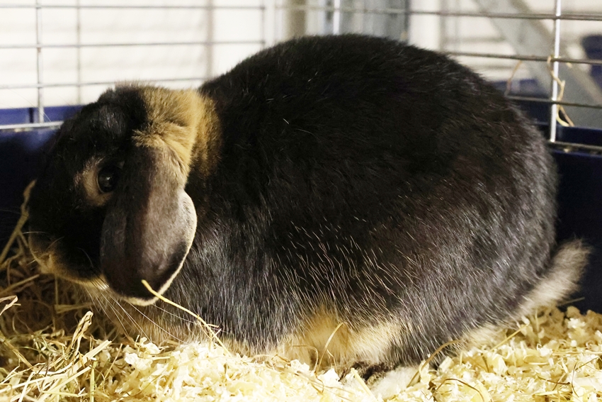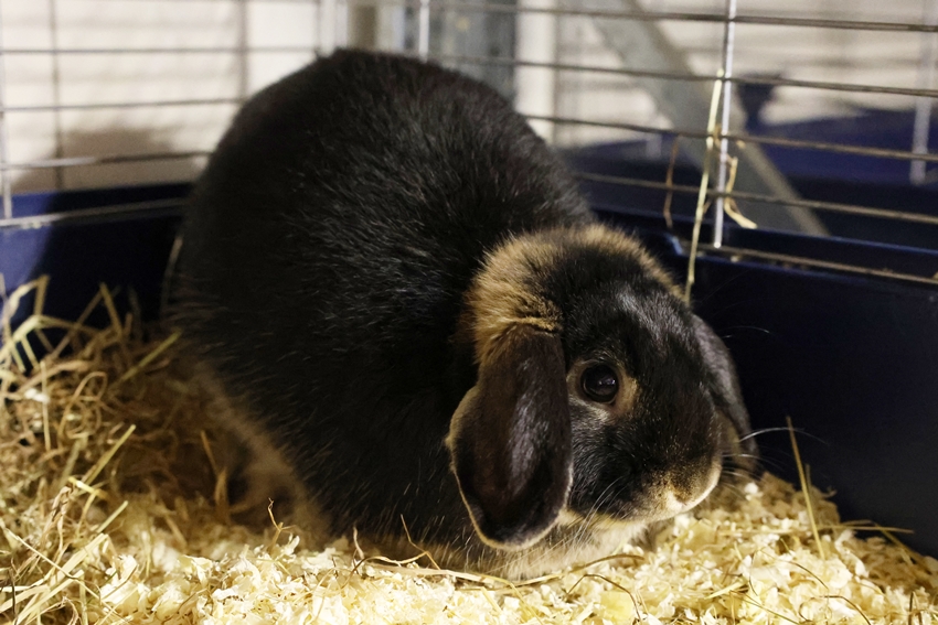 Wir suchen ein neues Zuhause für unser männliches Widder-Kaninchen „Rossi“.